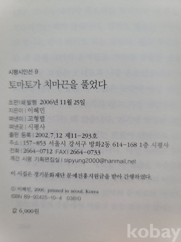 2006년 발간한 첫 시집 『토마토가 치마끈을 풀었다』