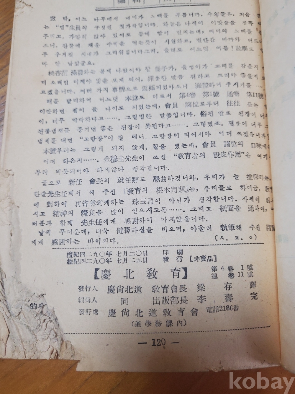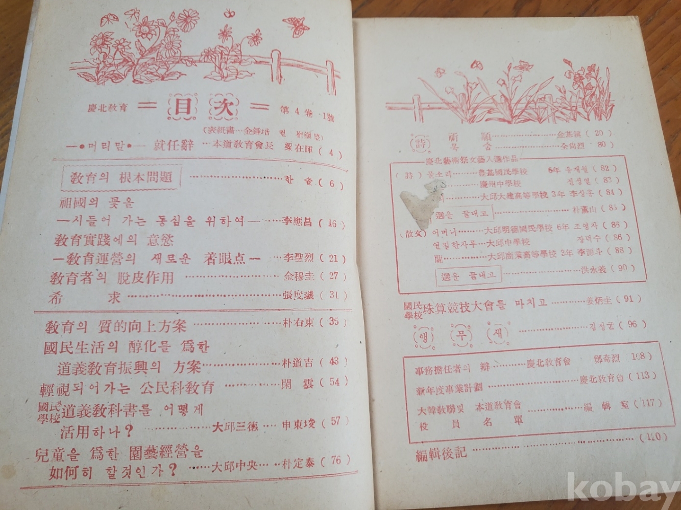 1. 경북교육 통권 11호, 경상북도교육회, 1957년, 120쪽, 비매품, 사진 참조