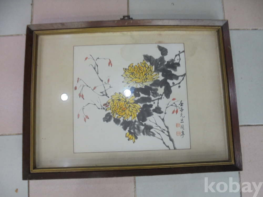 4군자의 하나인 위와 아래에서 뻗은 천지 황국으로 임자 1972년 원정 무언가 잘구사한 천지 황국화 액자