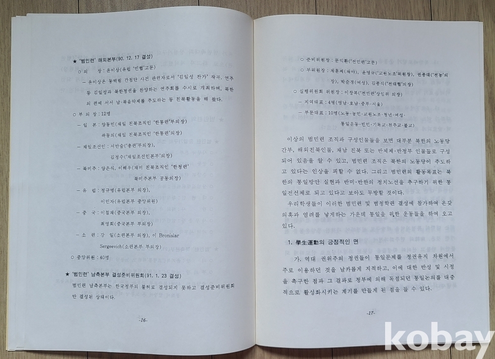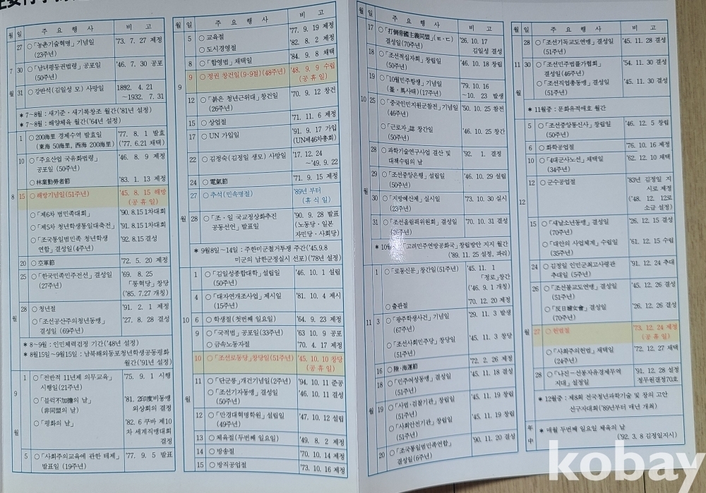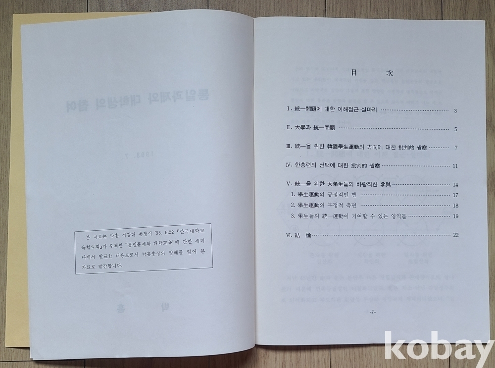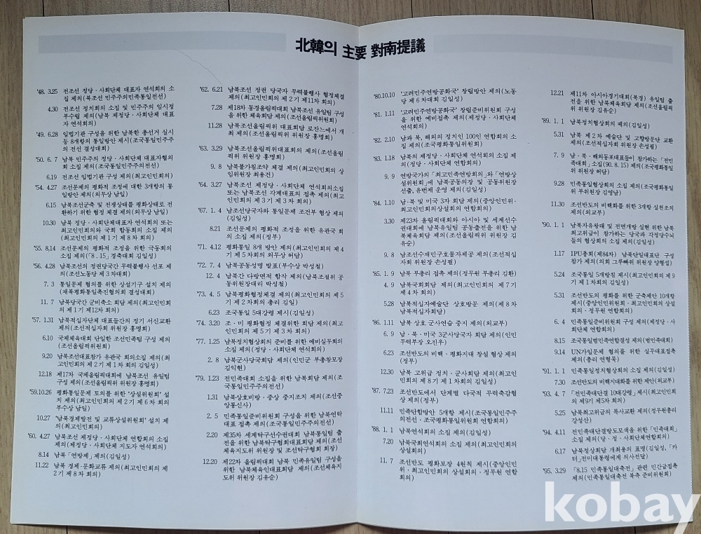 1996년 통일원 발행 예정표와 박홍 서강대총장의 세미나 자료집 1993년 발행.25페이지