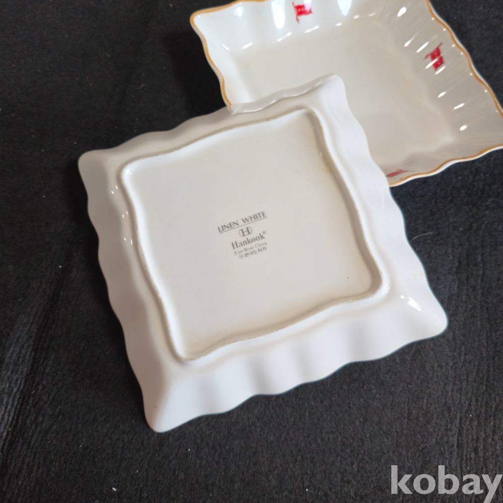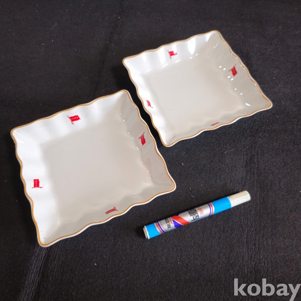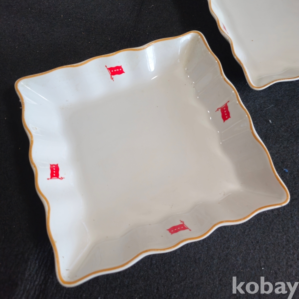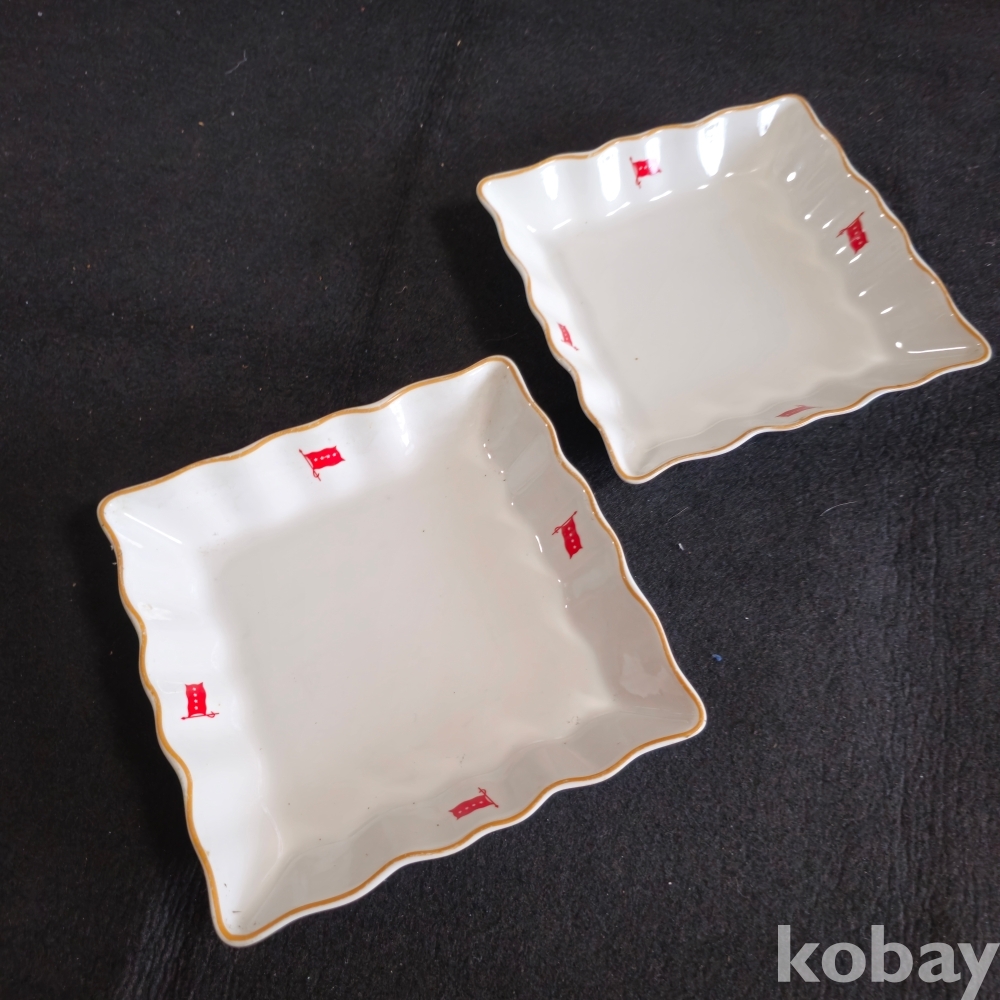 (((군자료))) 오래전 육군참모총장 공관에서 연회시 사용하던 사각 도자기접시 2개 (한국도자기)
