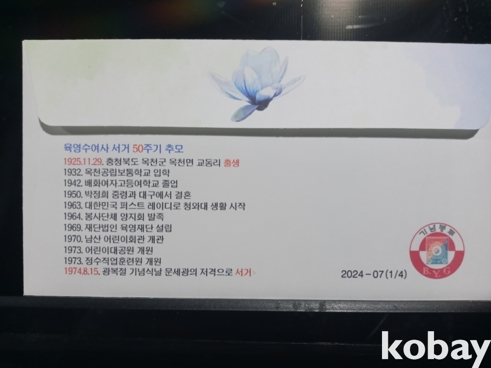 (희귀) 육영수여사 서거 추모 50주기 초일봉피 - 1
