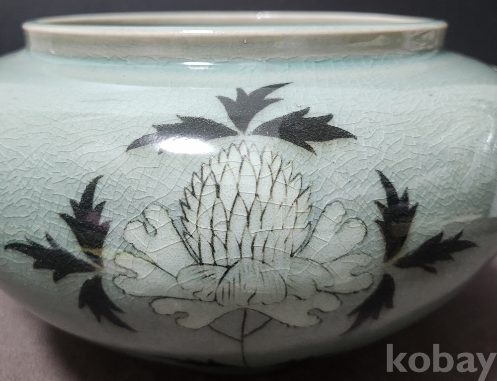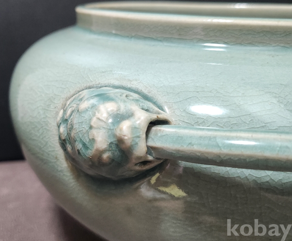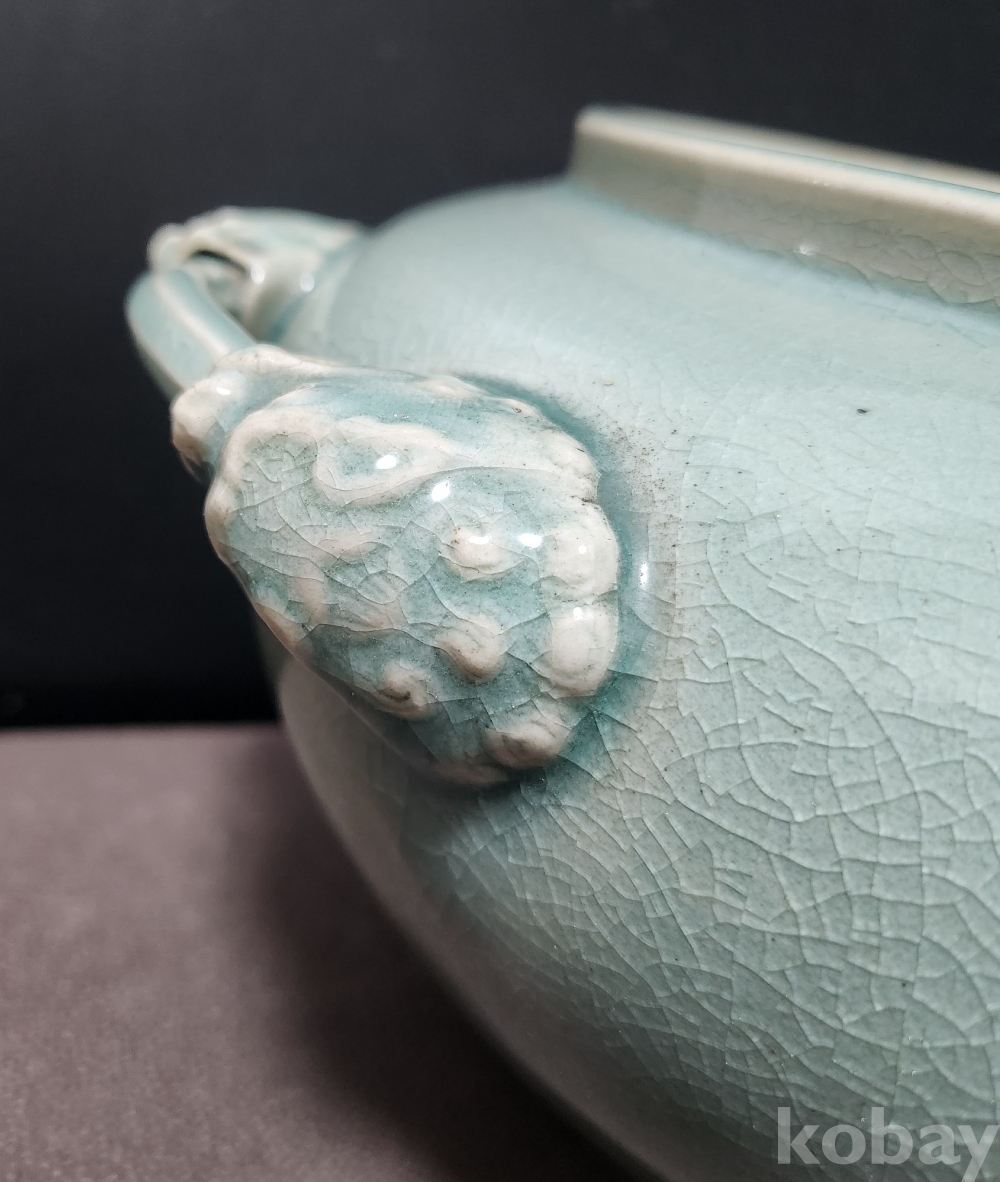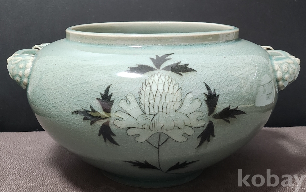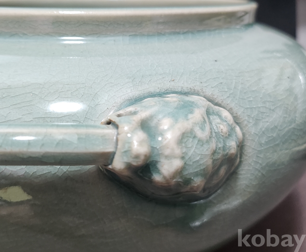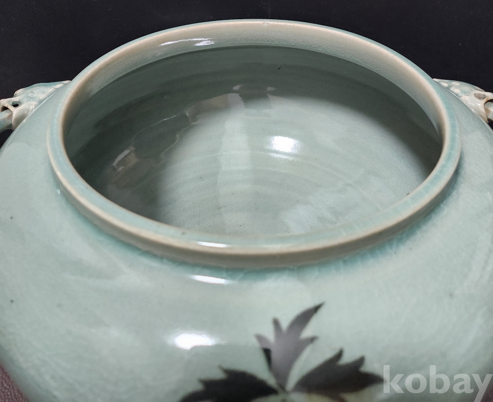 청자상감모란문양각해태문양이호 靑磁象嵌牡丹文陽刻獬豸紋兩耳壺