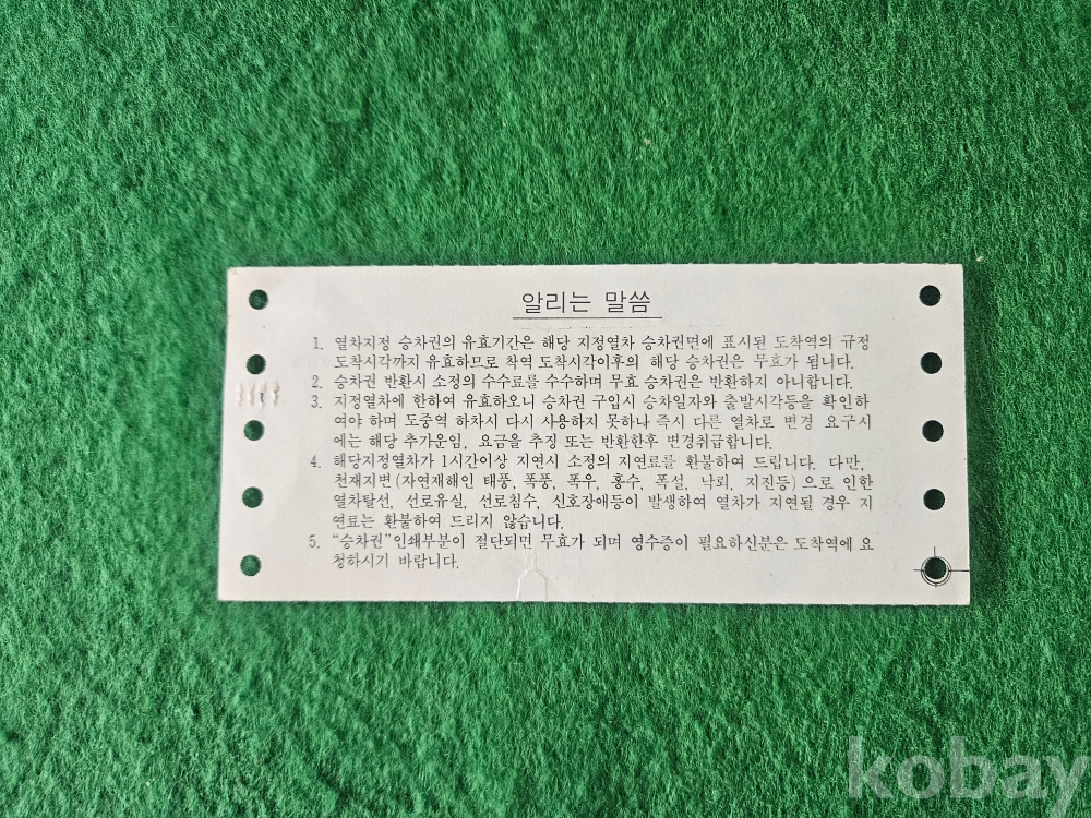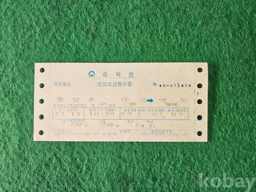 - 열차 승차권 통일호 " 서울 - 영동 "