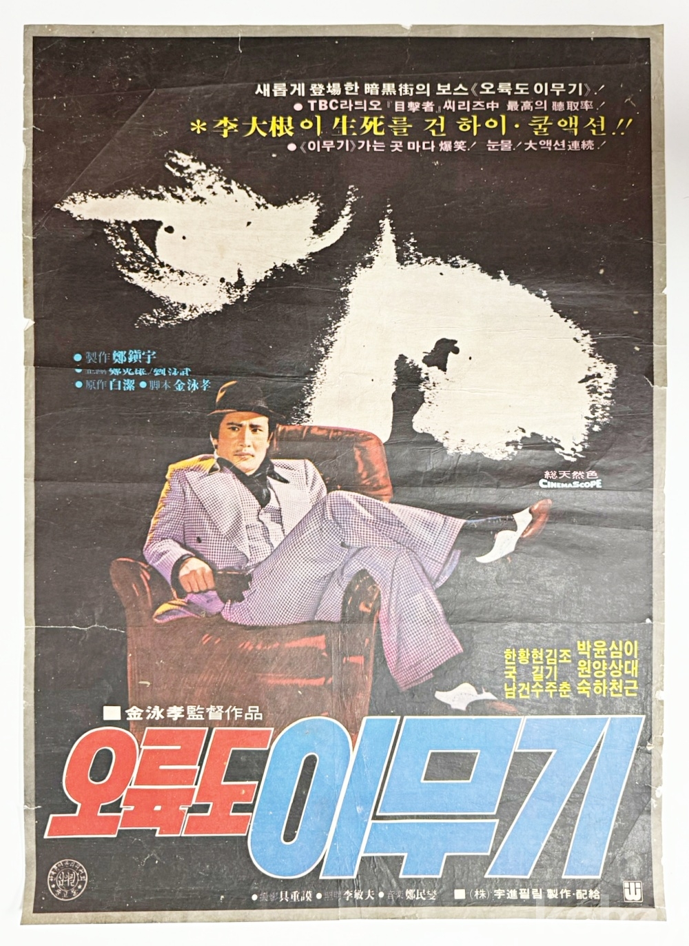 상품 설명 | 1978년 이대근이 주연을 맡은 영화 '오륙도 이무기' 포스터로 형의 죽음의 비밀에 대해 파헤치는 이무기의 이야기를 다루고 있다. | ||
