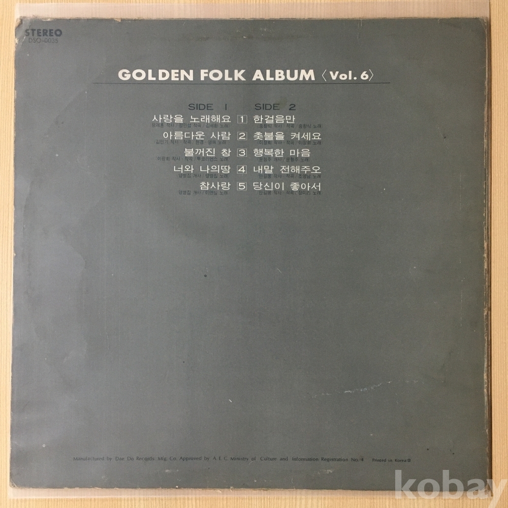 . 가요음반 대부분은 휘어짐이나 손상을 방지하기 위해 무지싱글자킷을 하나 더 사용하여 보관되었던 음반들입니다.