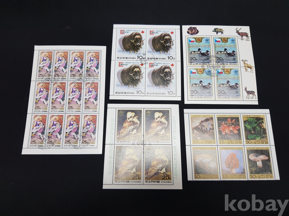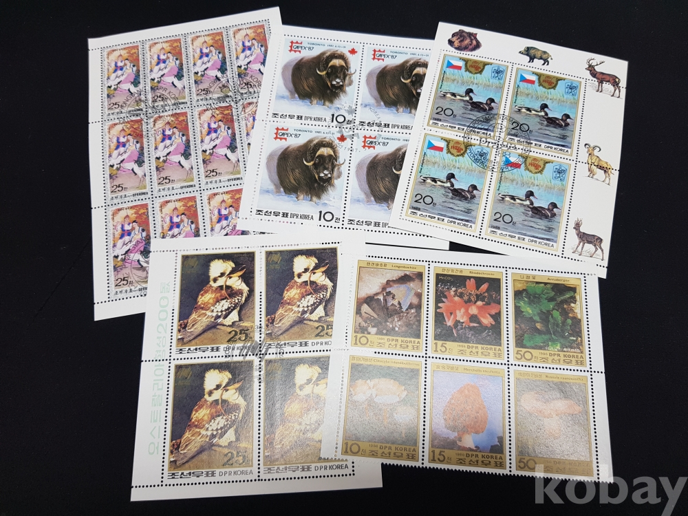 *천원경매* 다양한 윗동네 우표 전지 5종 모음 [ 우표 / 우취자료 / 조선우표 / 북한우표 / 해외우표 / 외국우표 ] #13(A)-1014 #CO #HH