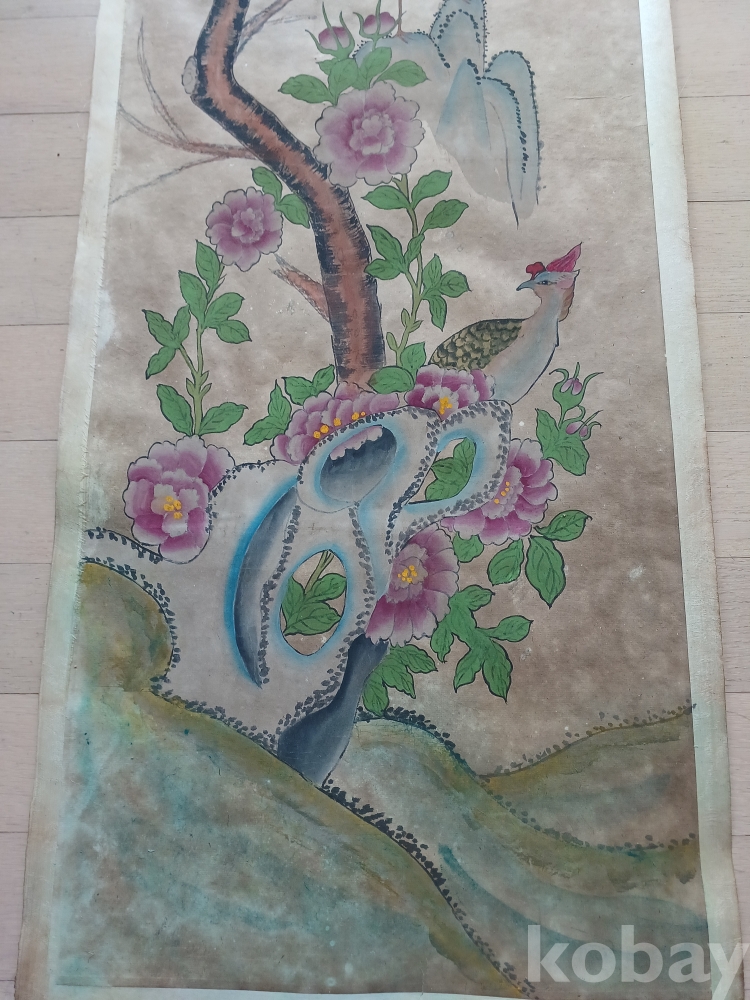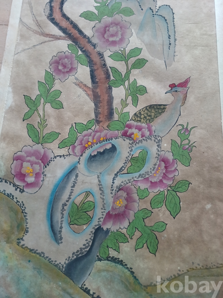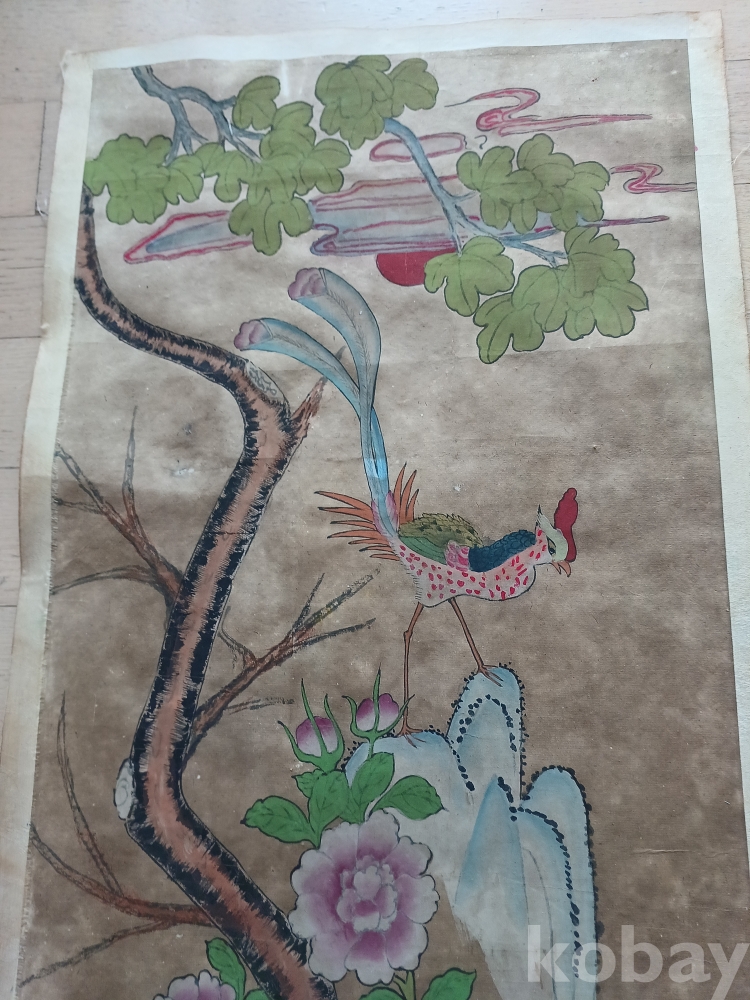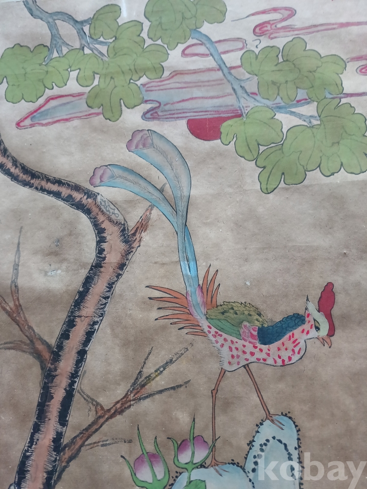 상태 선말에서 일제강점기초인 화조민화입니다 자연연대입니다 봉황 한쌍이 매우 아름답습니다 궁굼하신점은 문의해주세요