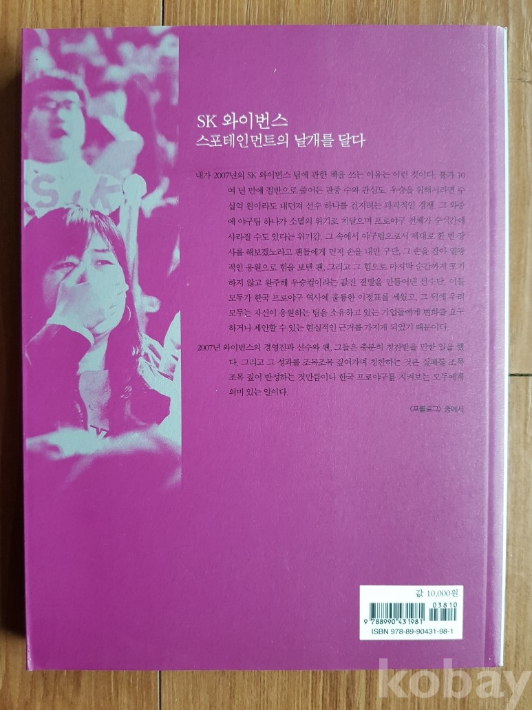 설명: 이 책은 KBO 에스케이 와이번즈 프로야구단 팬을 위한 야구 스포데인먼트로 팬과 함께 하는 장면들을 기록한 SK만의 야구 응원단 책입니다.