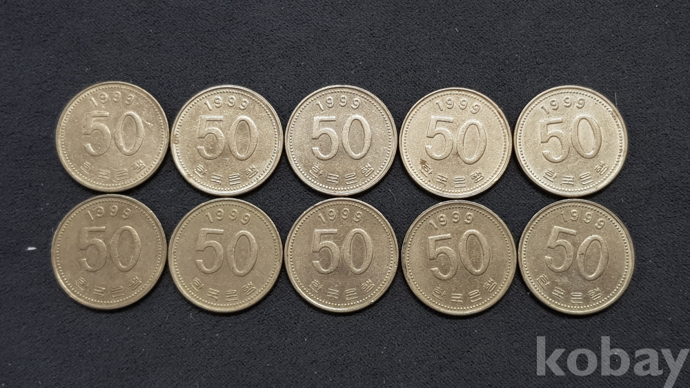 *천원경매* 특년도 1999년 50원 / 50주 사용제 10점 일괄 [ 화폐 / 주화 / 현행주화 / 한국은행 ] #60(주)-1017 #HH #CO