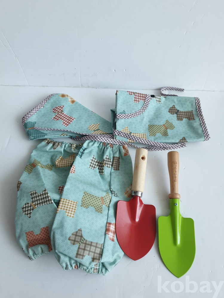 [천원경매] 10-104 아동용 방수 앞치마+토시+머리수건+모니모종삽 세트(미사용세트, 앞치마 가슴단면 39cm, 길이 47cm)