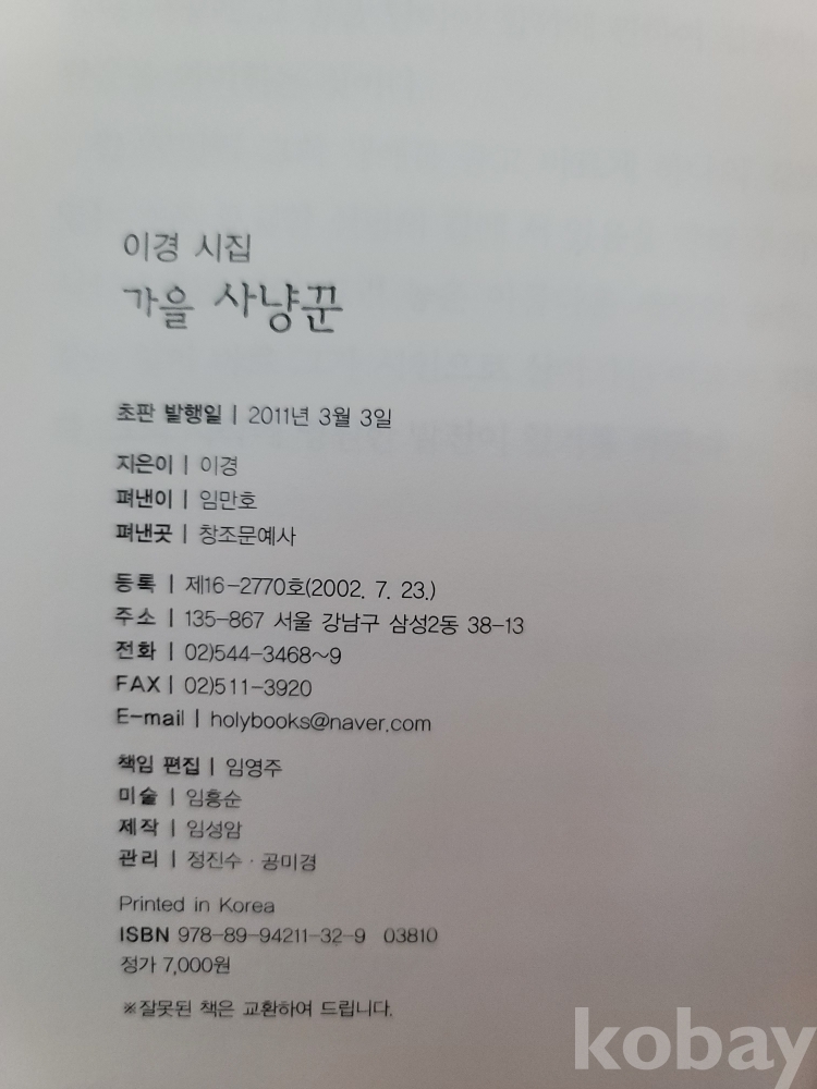 2011년 발간한 제5시집 『가을 사냥꾼』