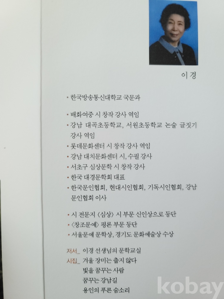 대경문학회 회장 & 한국문인협회 평생교육원 교수 등을 역임.