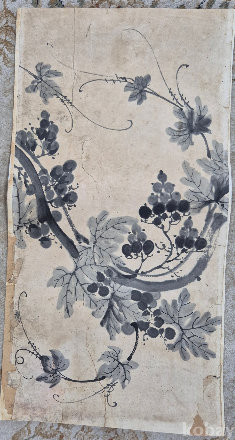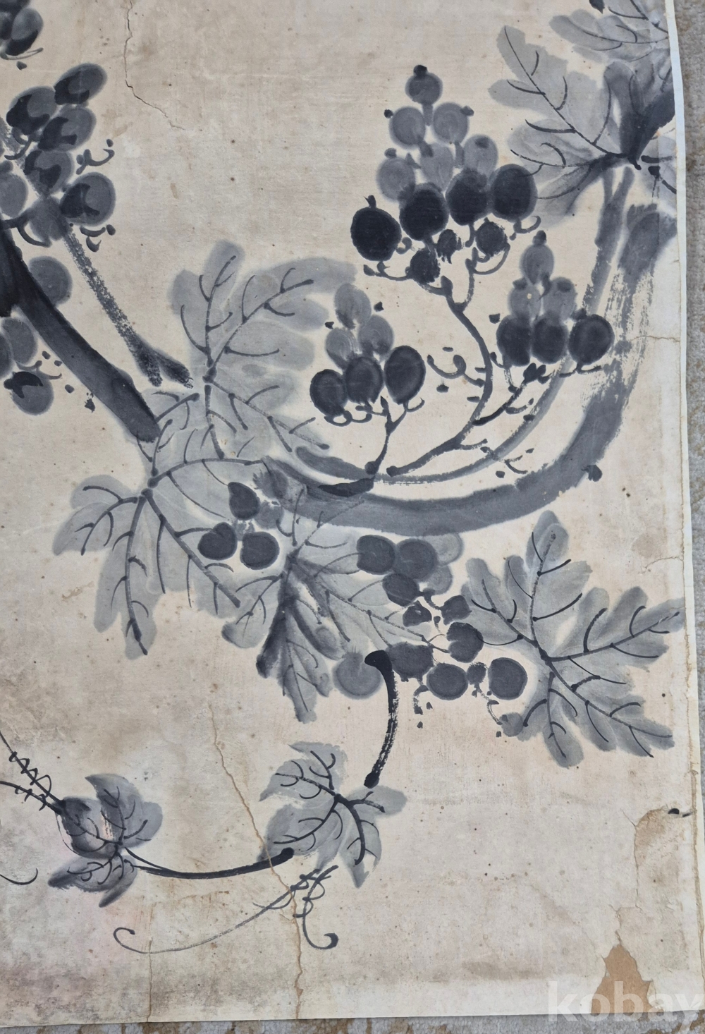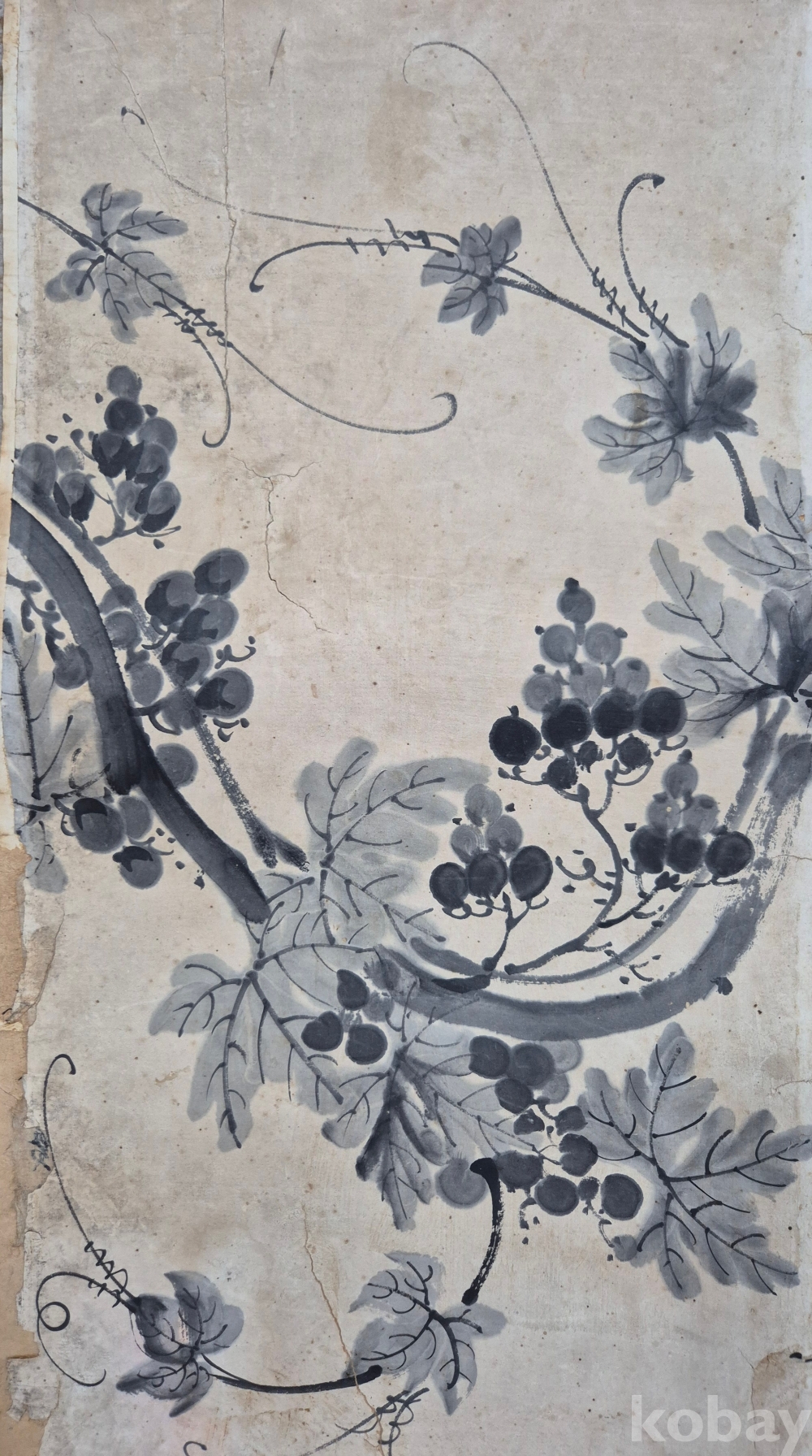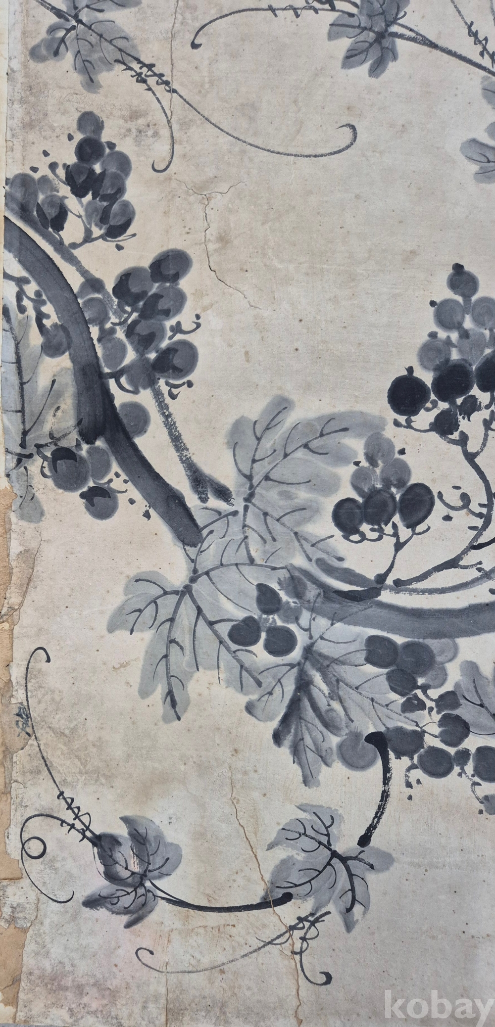 원래 10폭 병풍 작품 연결 포도 작품이나 오래되어 서너점 훼손되고 남은 작품이라 하셨으며