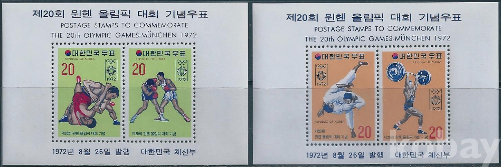 (한국시트-725)1972년20회뮌헨올림픽대회시트2종(미사용제)-MNH, VF