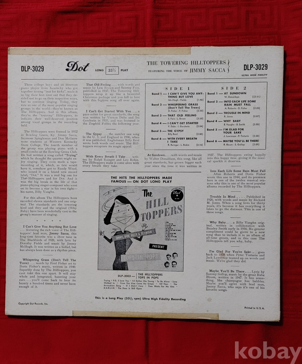 Towering Hilltoppers 앨범입니다 / 트랙은 별도로 제공합니다 / Ex+/ 미국