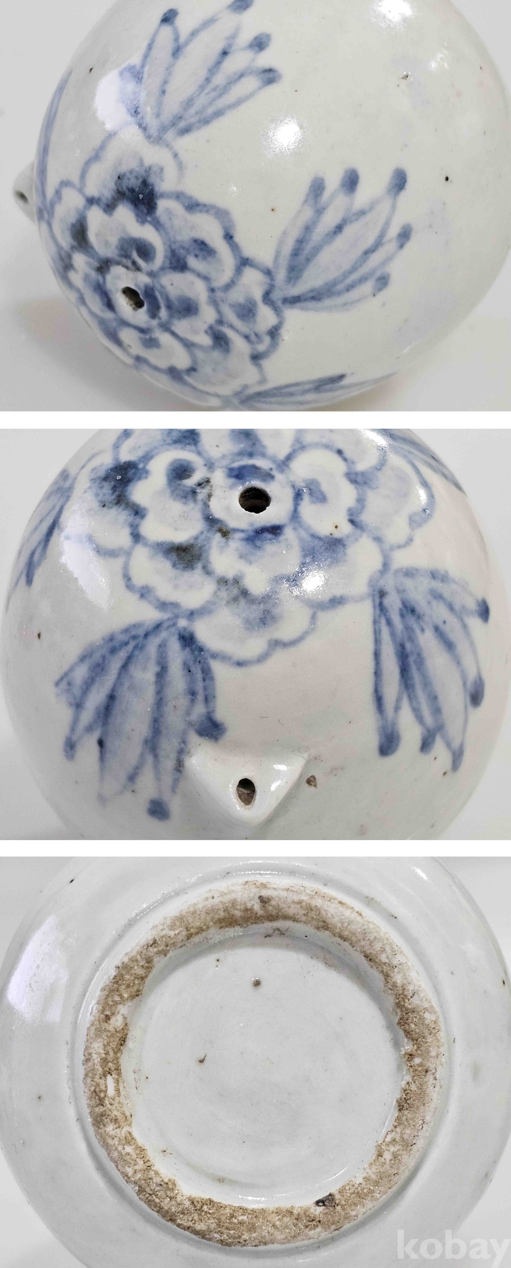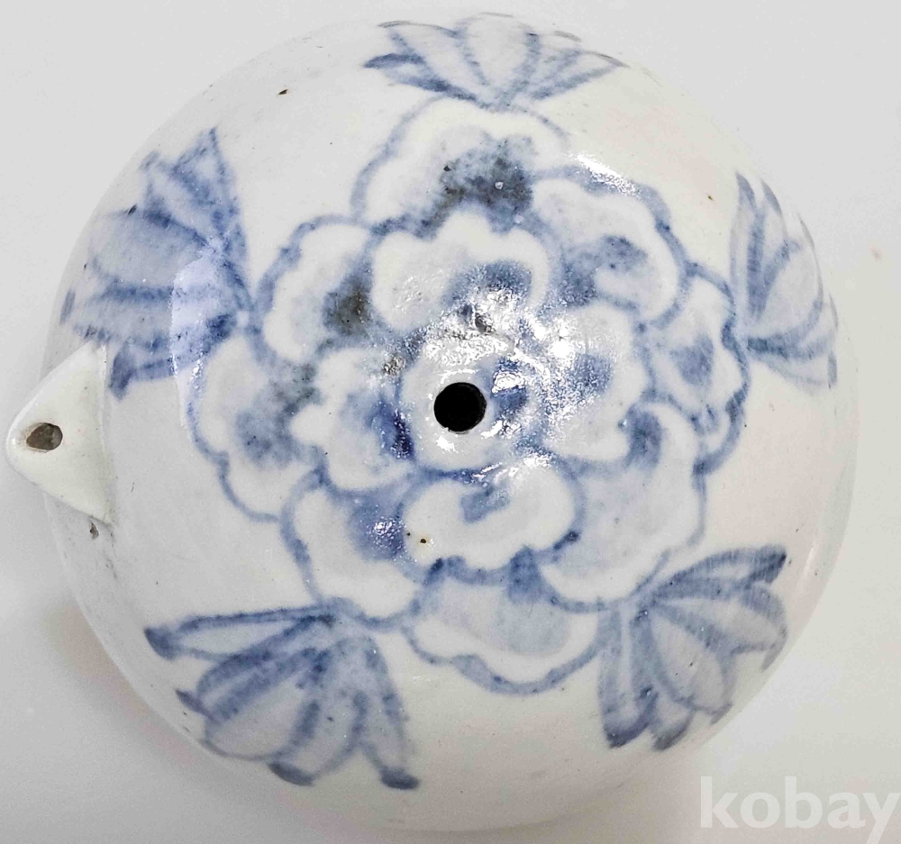 @상태: 연대감 좋은 연적07 청화백자 모란문 무릎연적입니다.