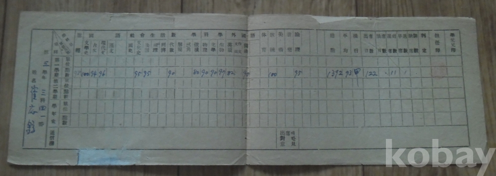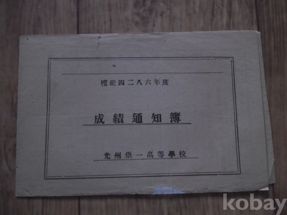 1953년 광주숭일고등학교 성적통지부