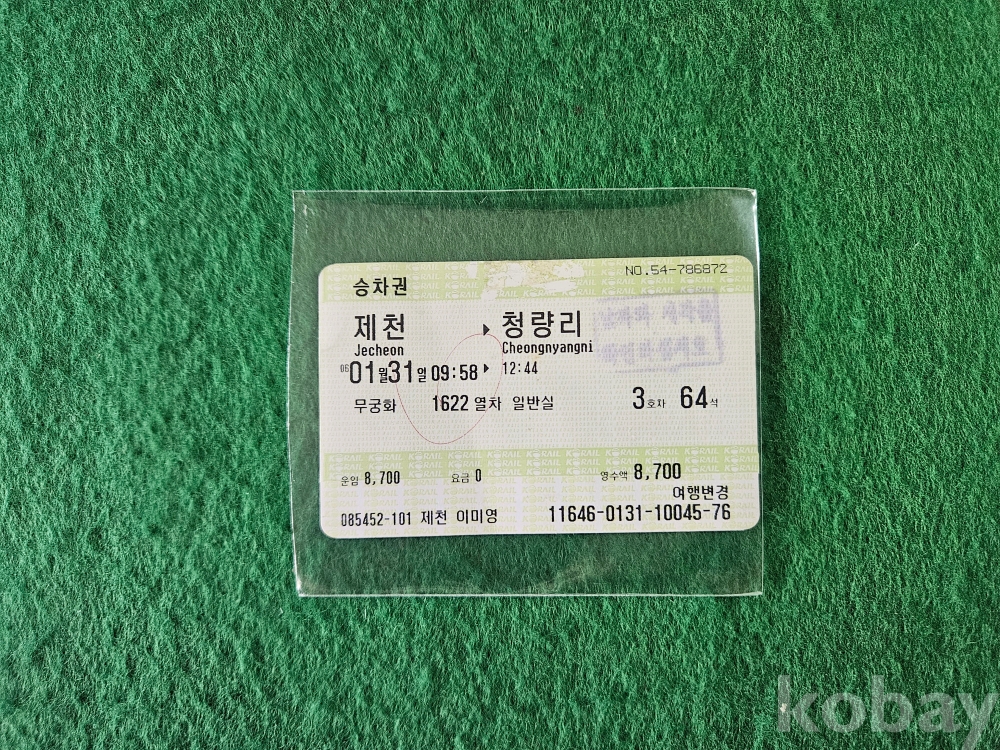 - 제천에서 청량리 요금(8,700원)