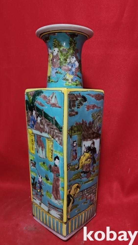 분채로 인물이 도안으로 시문된 고급형 도자기입니다,