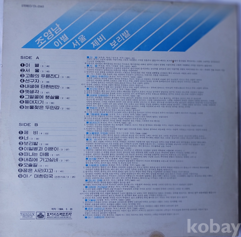 자켓상태 | NM : 개봉했으나 미사용, 자켓 손상 없음 | 음반상태 | NM : 개봉했으나 미사용급, 스크래치 없음 | 발매정보 | 초반 | 가사지여부 | 무 |