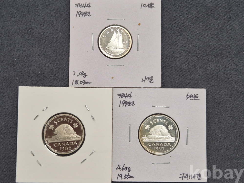 [해외주화] 캐나다 1986년/1997년 5센트 / 1997년 10센트 무광 프루프 주화 - 3종