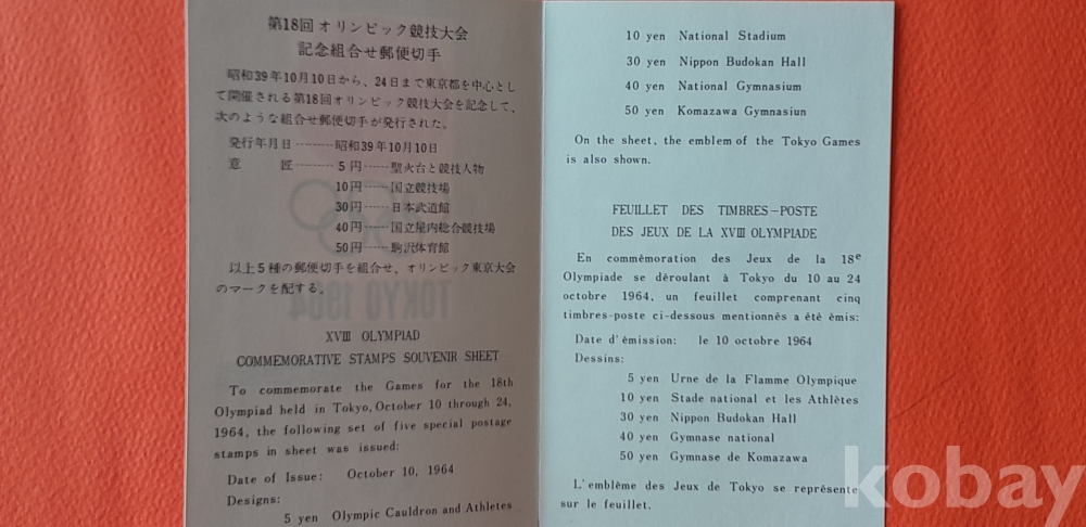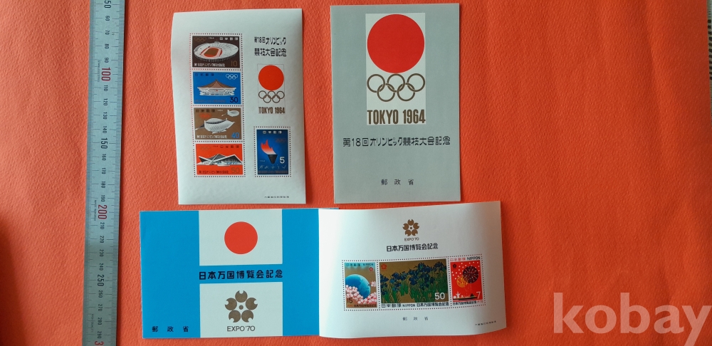 일본 18회 동경올림픽(1964년), 만국박람회(1970년) 관련 시트와 안내카드 각 2종 입니다.