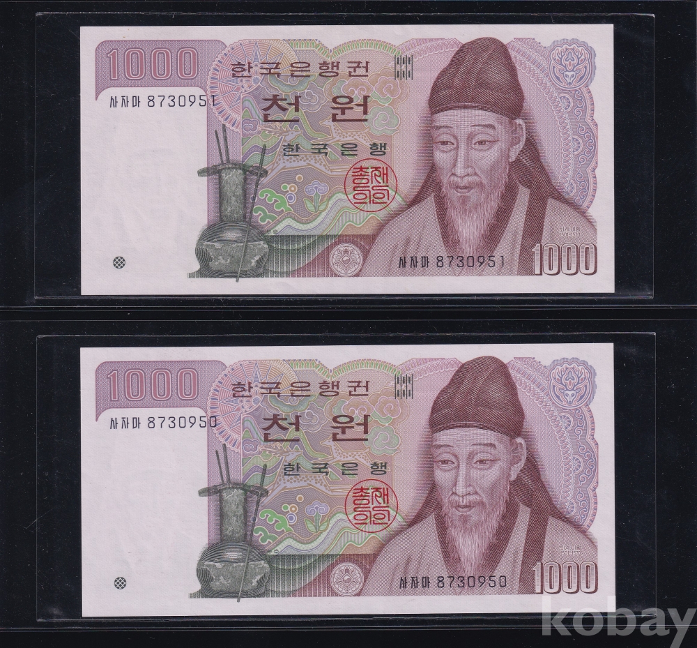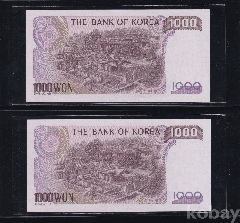 - 1983년 2차 천원 양성권 8포인트 2연번 미사용 지폐 - 2장 일괄