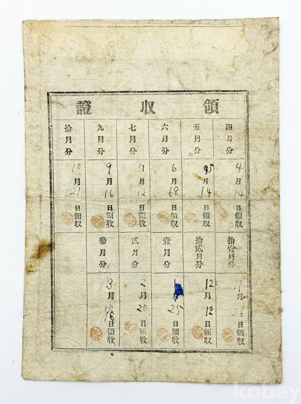 상품 설명 | 경상북도 안동시 풍산 소재의 풍북공립보통학교는 現 풍북초등학교의 전신으로 1928년 6월에 개교한 학교이다. 뒷면에는 매월 수업료를 납부하고 확인 도장을 받은 영수증이 표기되어 있다. | ||