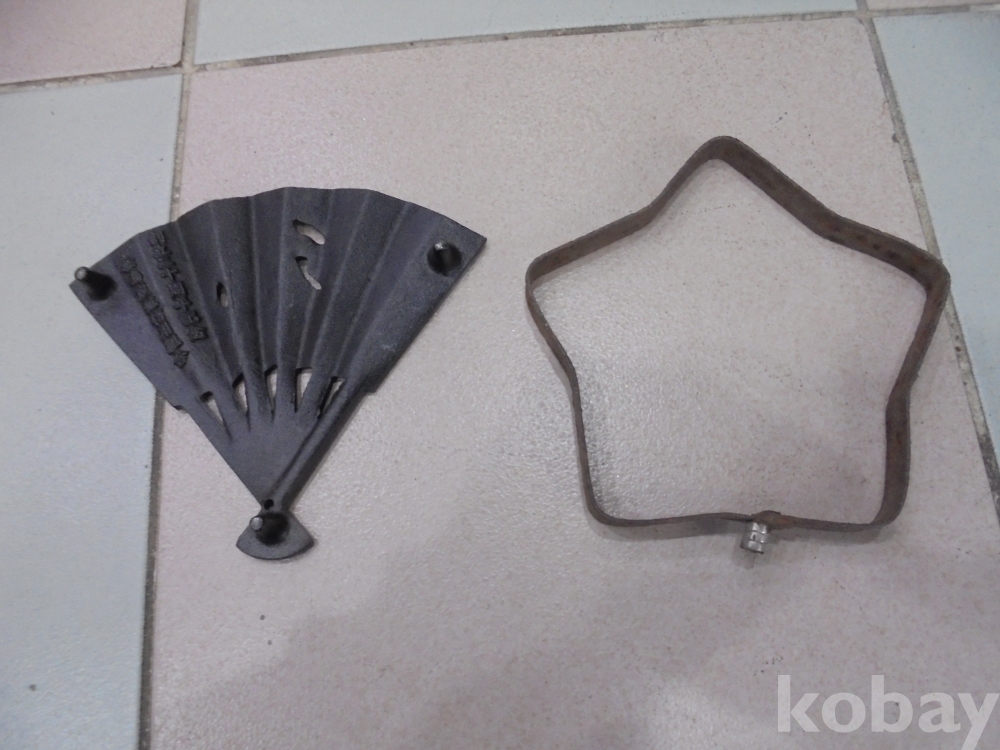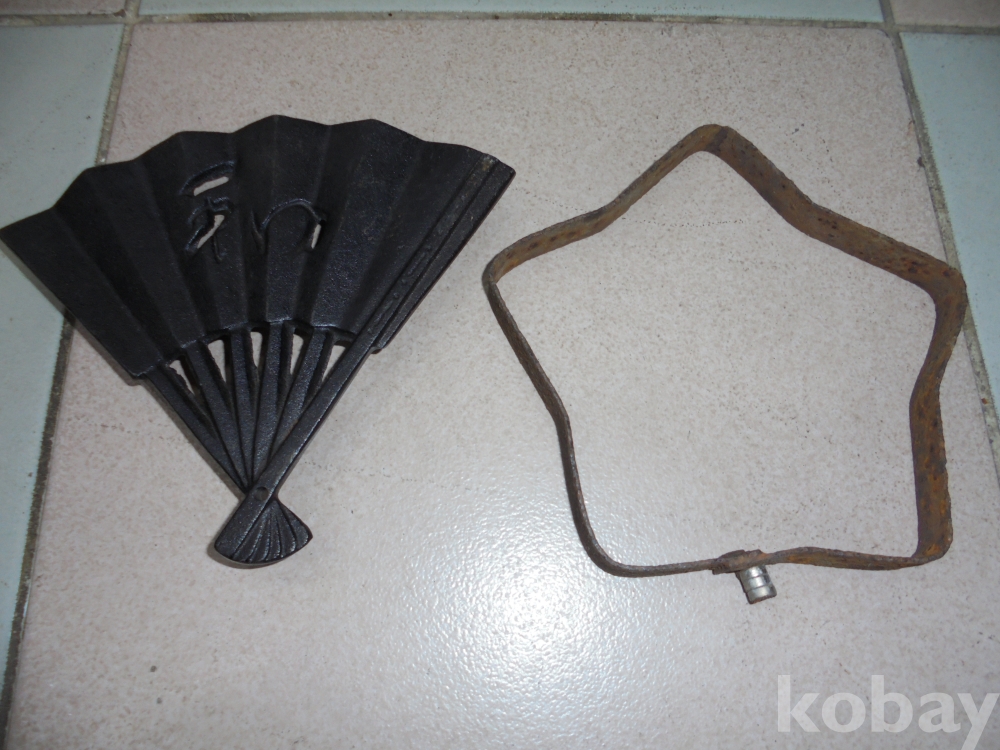송도 탄광신용조합 20주년기념으로 만든 무거운무쇠로 뜨거운 남비올려놓는 부채형받침대와 오래된 별모양 받침대 1점