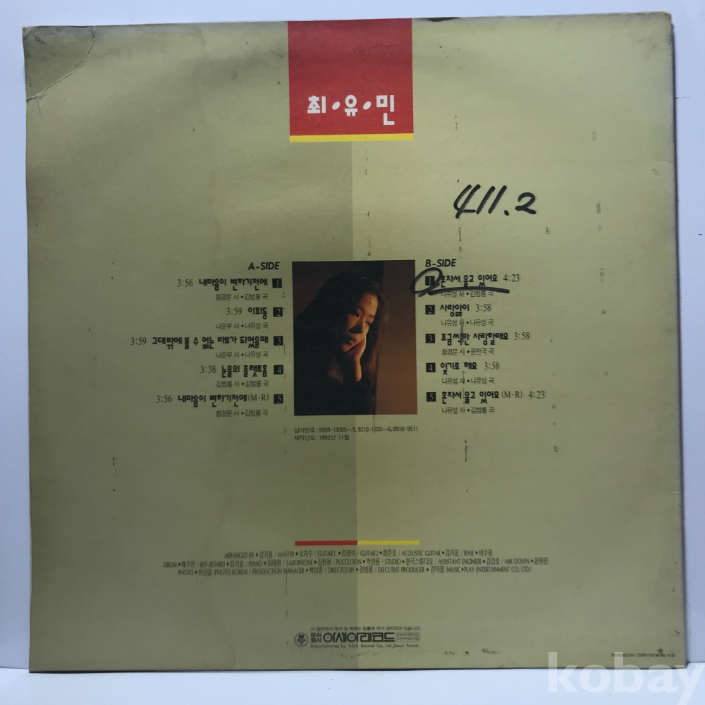 LP 35,150-77 최유민 1 - 내마음이 변하기전에 . ` 92 아세아 자켓 EX 알판 EX+