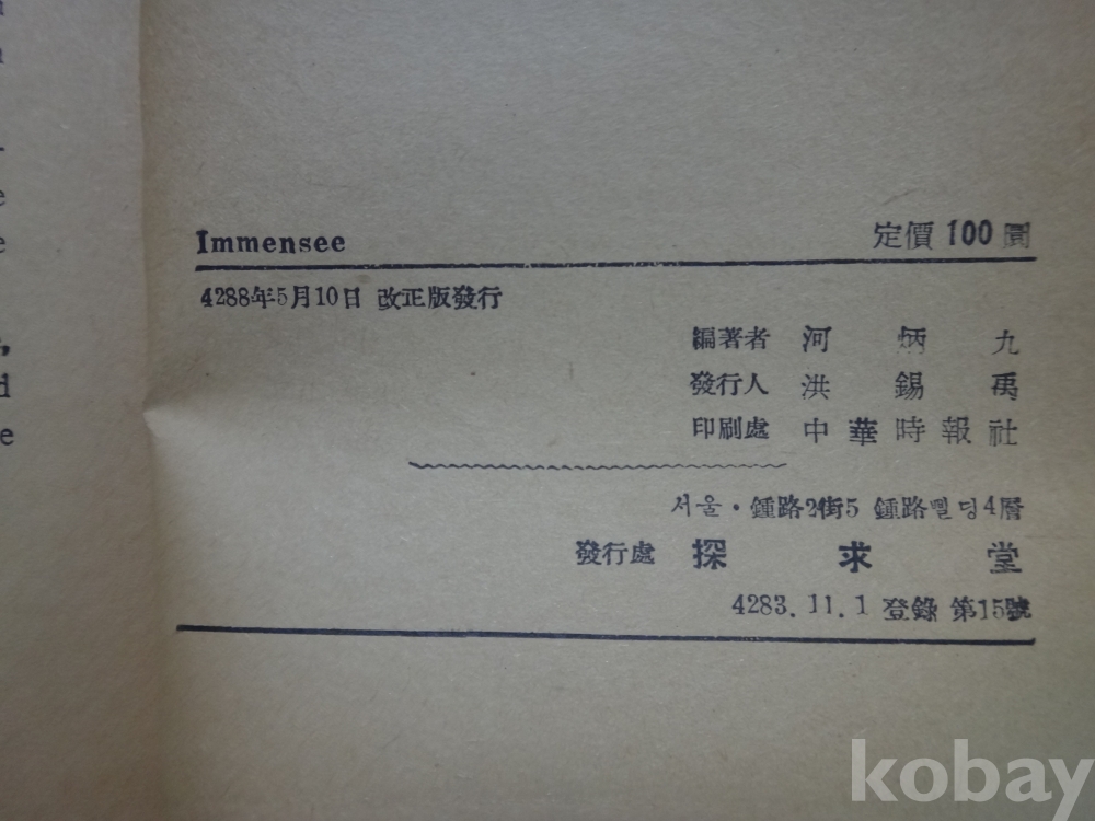 Immensee (임멘제, 테오도어 슈토름 저, 독일작가, 1955년, 중화시보사)