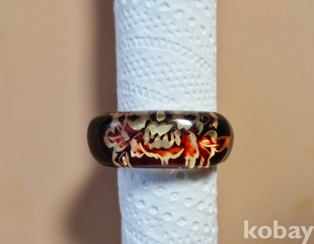 안쪽으로 인터리오라는 조각기법으로 무늬를 만든 반지입니다.