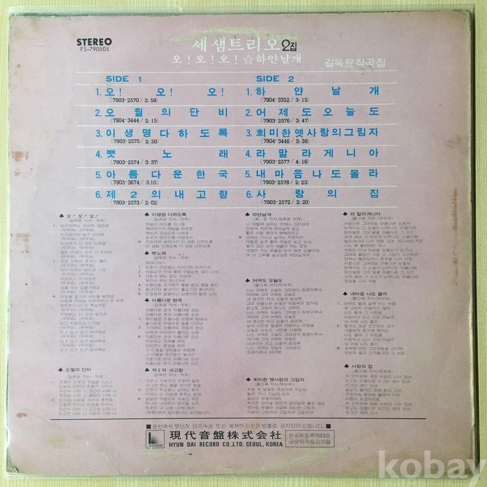 세샘트리오 2집 - 오!오!오! - 길옥윤작곡집