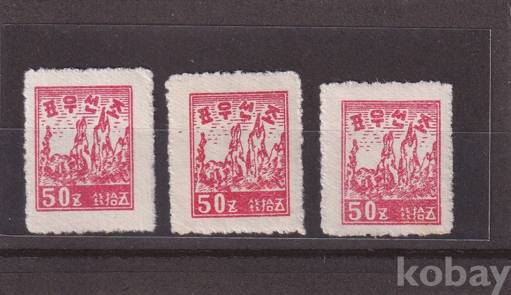 [윗동네 미사용 우표 모음展] - 금강산 삼번바위 50전 단편 3장 일괄