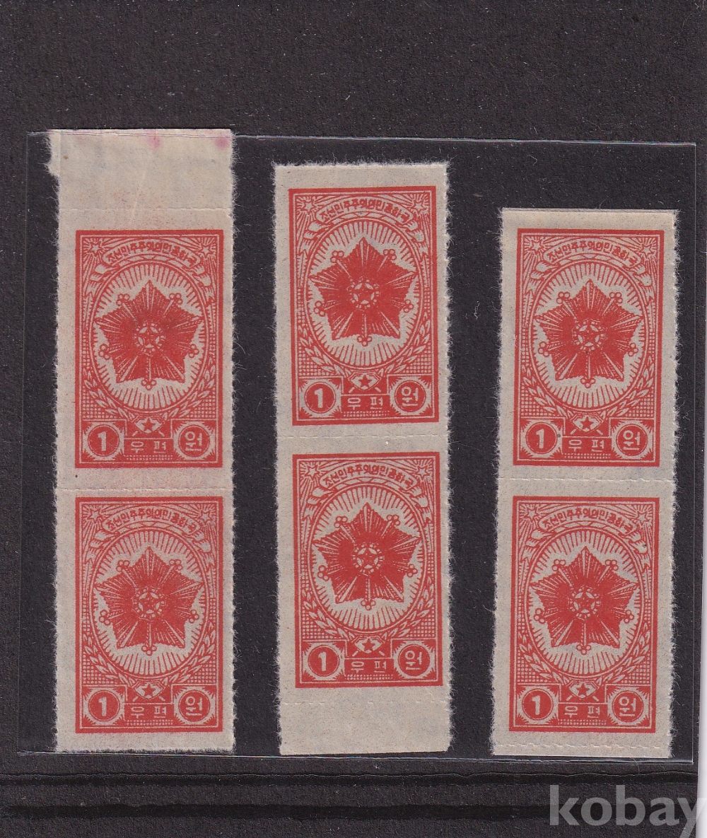 [윗동네 미사용 우표 모음展] - 국기 훈장 1원 세로 페어 3장 일괄