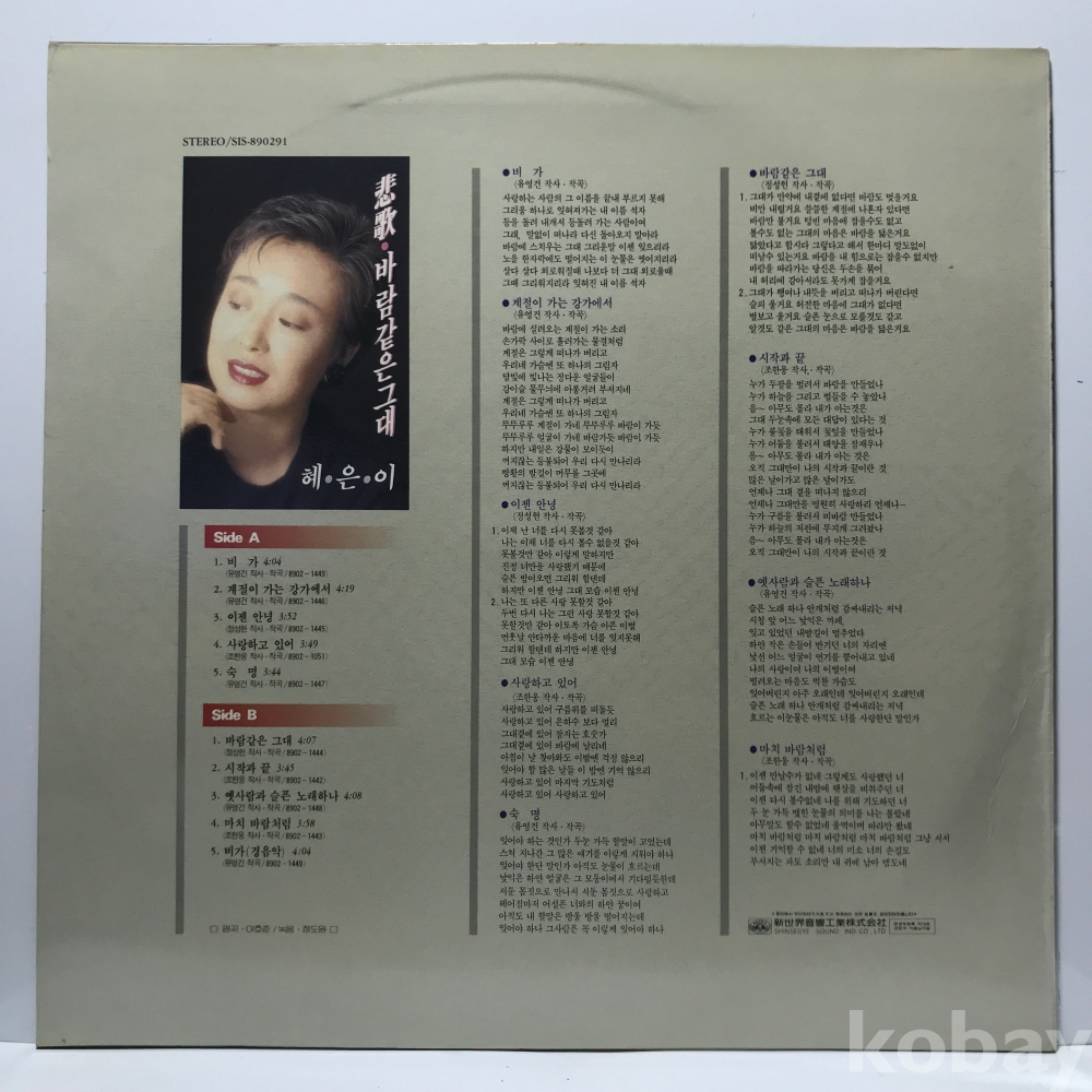 LP 35,050-69 혜은이 - 비가/ 바람같은 그대 . ` 89 신세계 자켓 EX+ 알판 EX