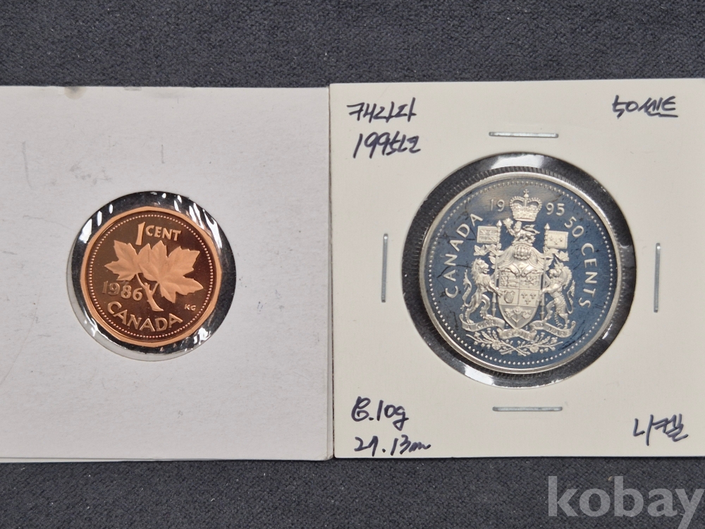 [해외주화] 캐나다 1995년 50센트/1986년 1센트 무광 프루프 주화 - 2종