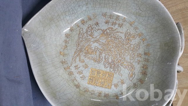 d-154.고급 오동박스에담긴 오래된 송여요 복숭아문양 수반