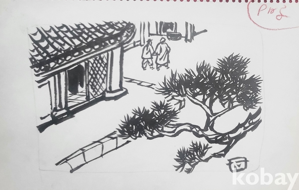 ###  스케치 북에 그린 것으로 어떤 삽화 뒷면에는 1984ㅡ5년 8월 ㅡ10월등의 날인(日印)이 있읍니다,