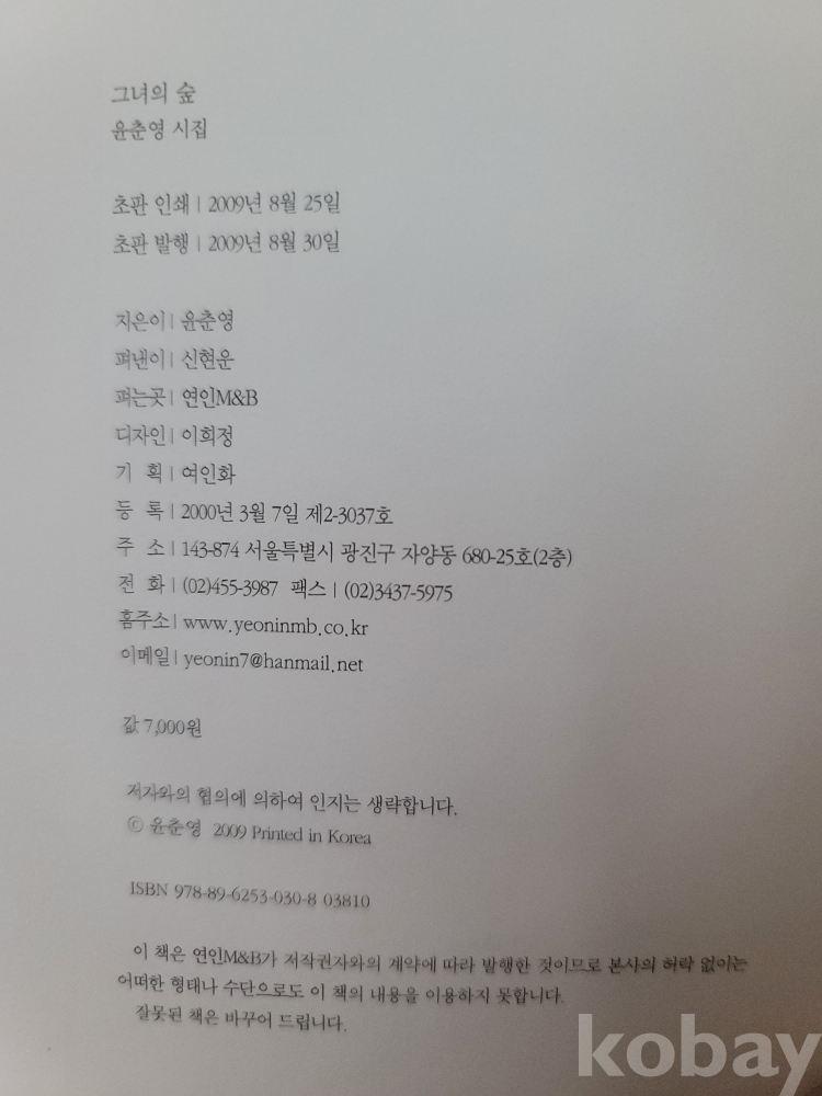 2009년 발간한 제2시집 『그녀의 숲』