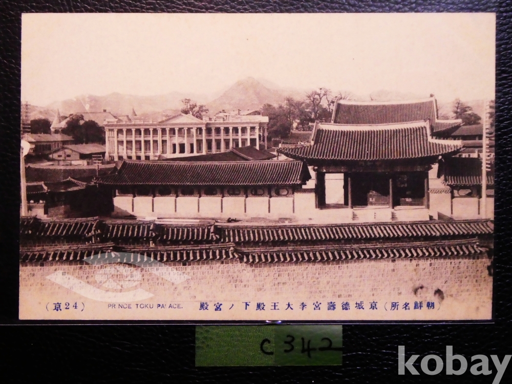 ▣근대한국엽서(진본): 경성 덕수궁, 이태왕전하(고종황제)의 궁전, 왼쪽 상단의 건물은 덕수궁 석조전임, 희귀, 히노데상행 발행.