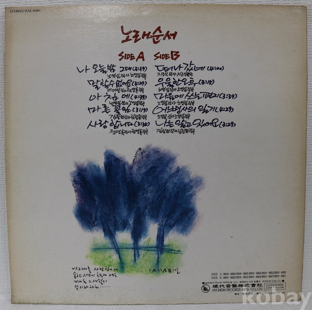 | 자켓상태 | EX : 약간의 마모, 모서리 찢김 존재 | 음반상태 | EX : 재생에 영향 없는 가벼운 기스 존재 | 발매정보 | 초반 | 가사지여부 | 유 |
