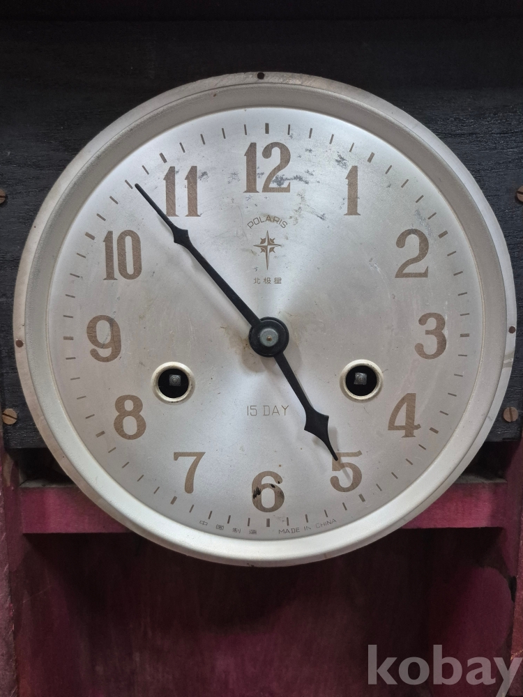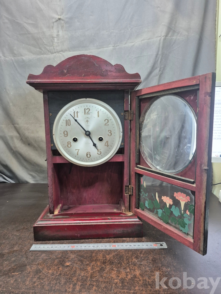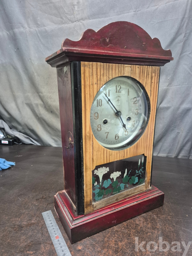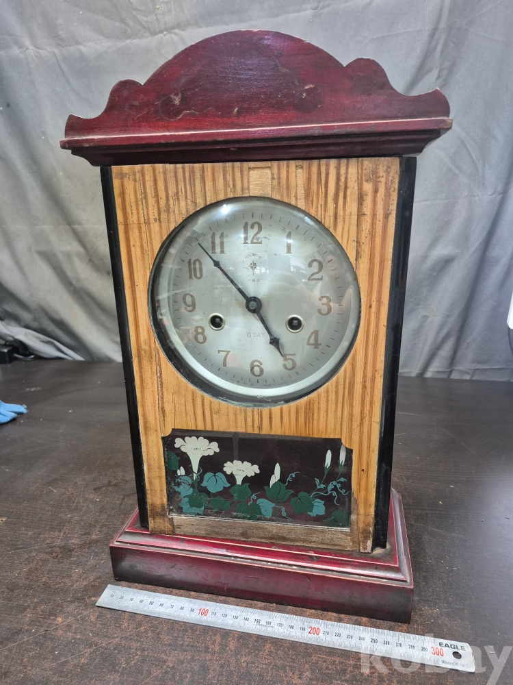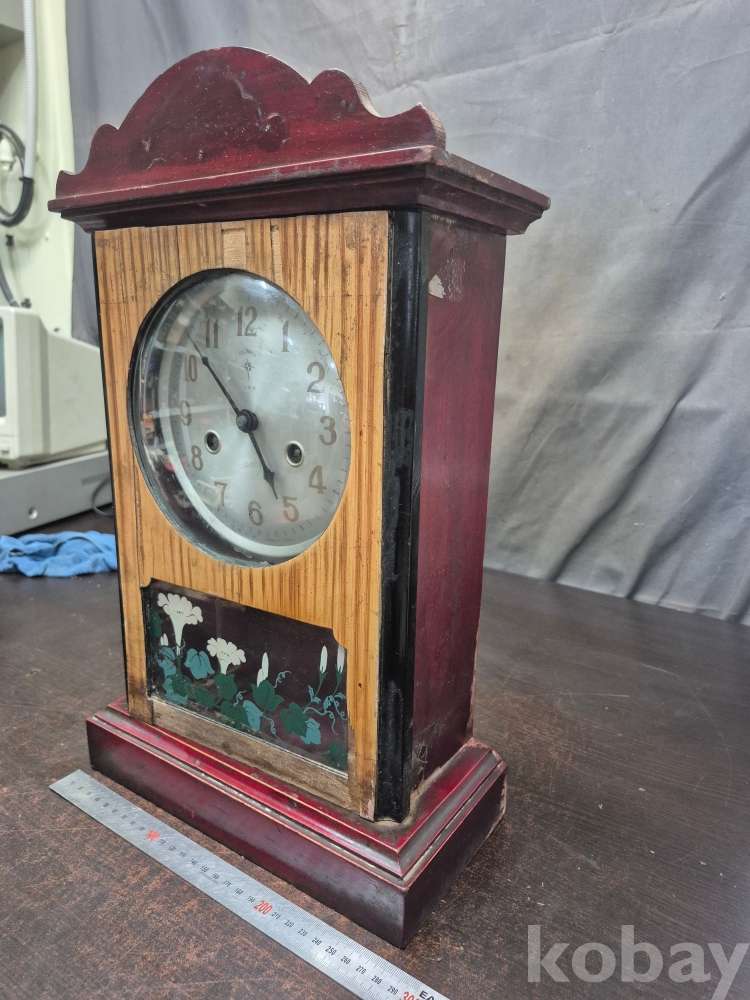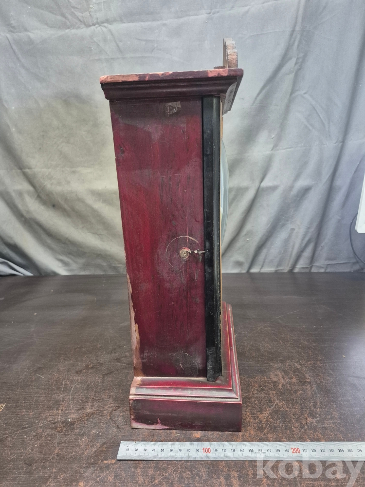 1970-80년대 탁상 벽걸이 겸용 원목 기계식 시계 잼마이 추 없음 소품용으로 판매 합니다 28*14*46