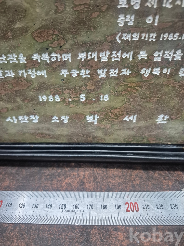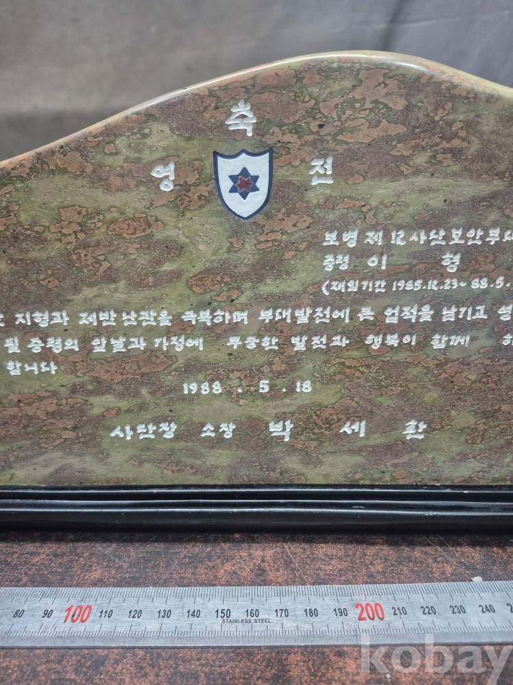 1988년 군자료 보병 제 12사잔 부안부대장 축 영전 사단장 소장 박세환님이 증정 42*6*18