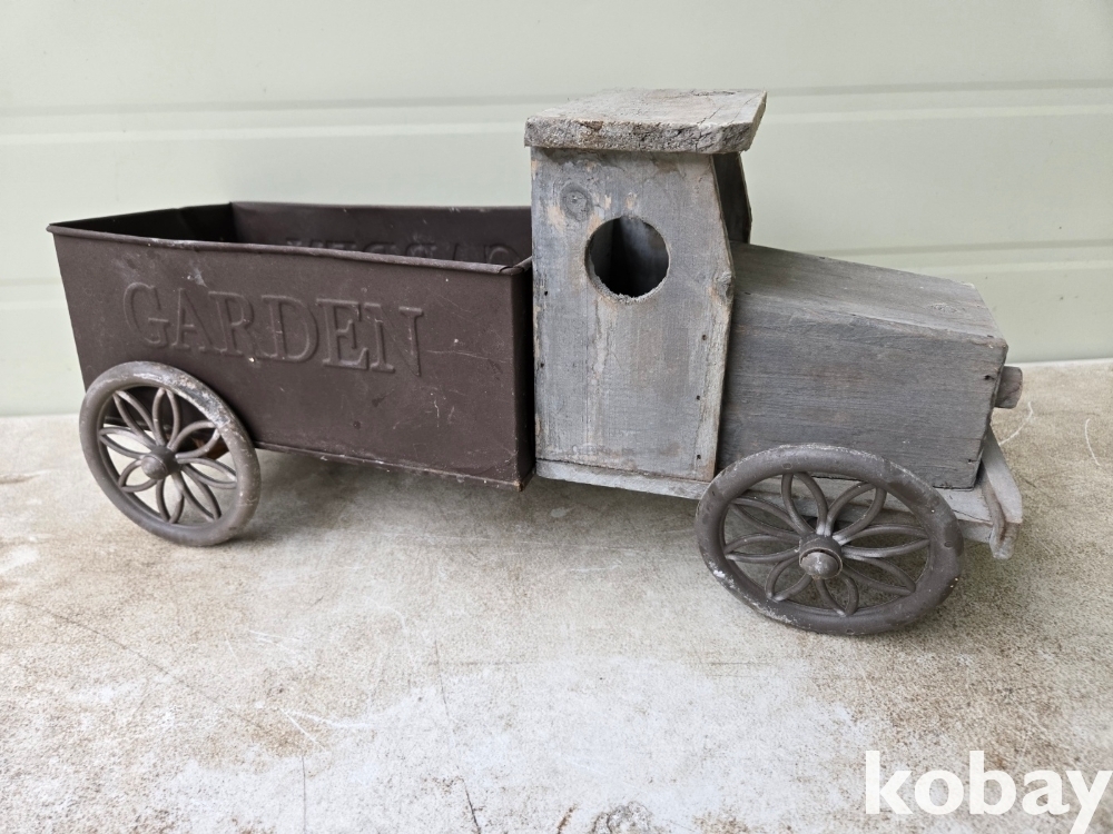 나무와 양철로 만들어진 트럭 자동차 입니다.