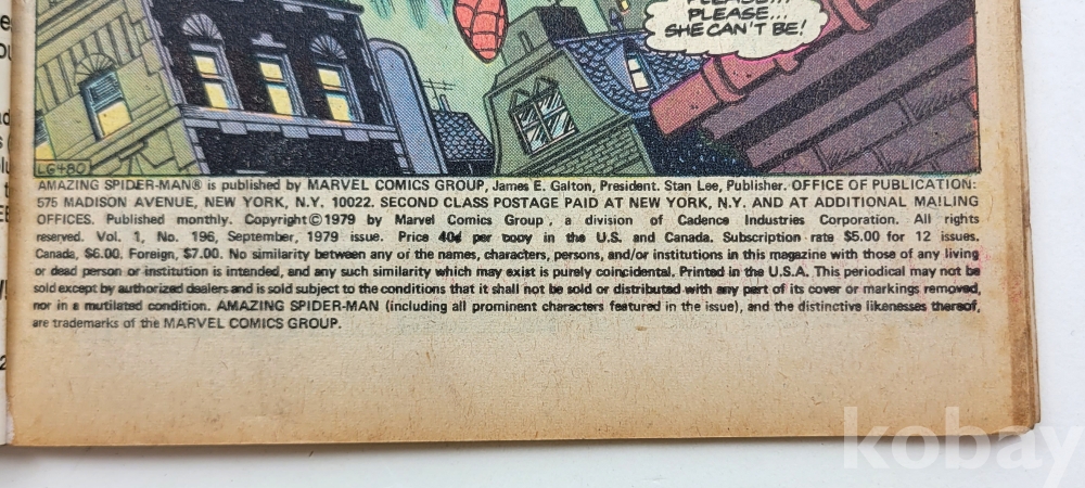 물 품 명 | the Amazing SPIDER-MAN / Vol.1 #196 Sep. 1979 / MARVEL COMICS GROUP / 미국 |