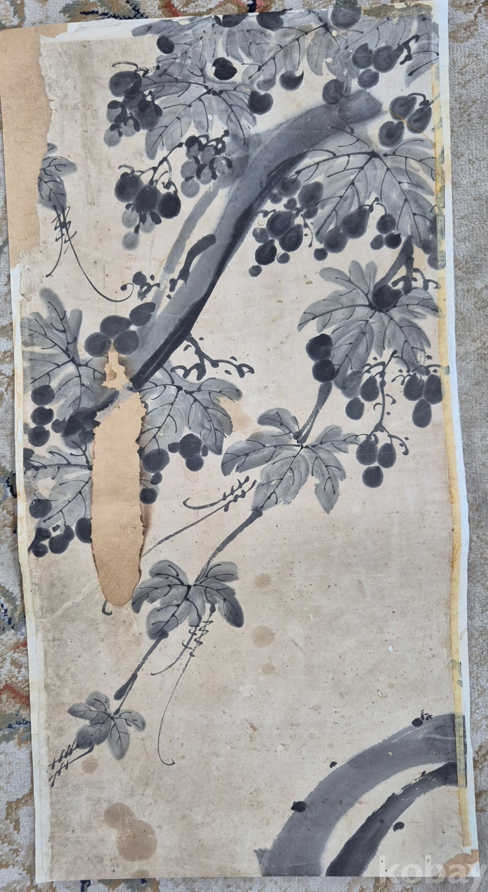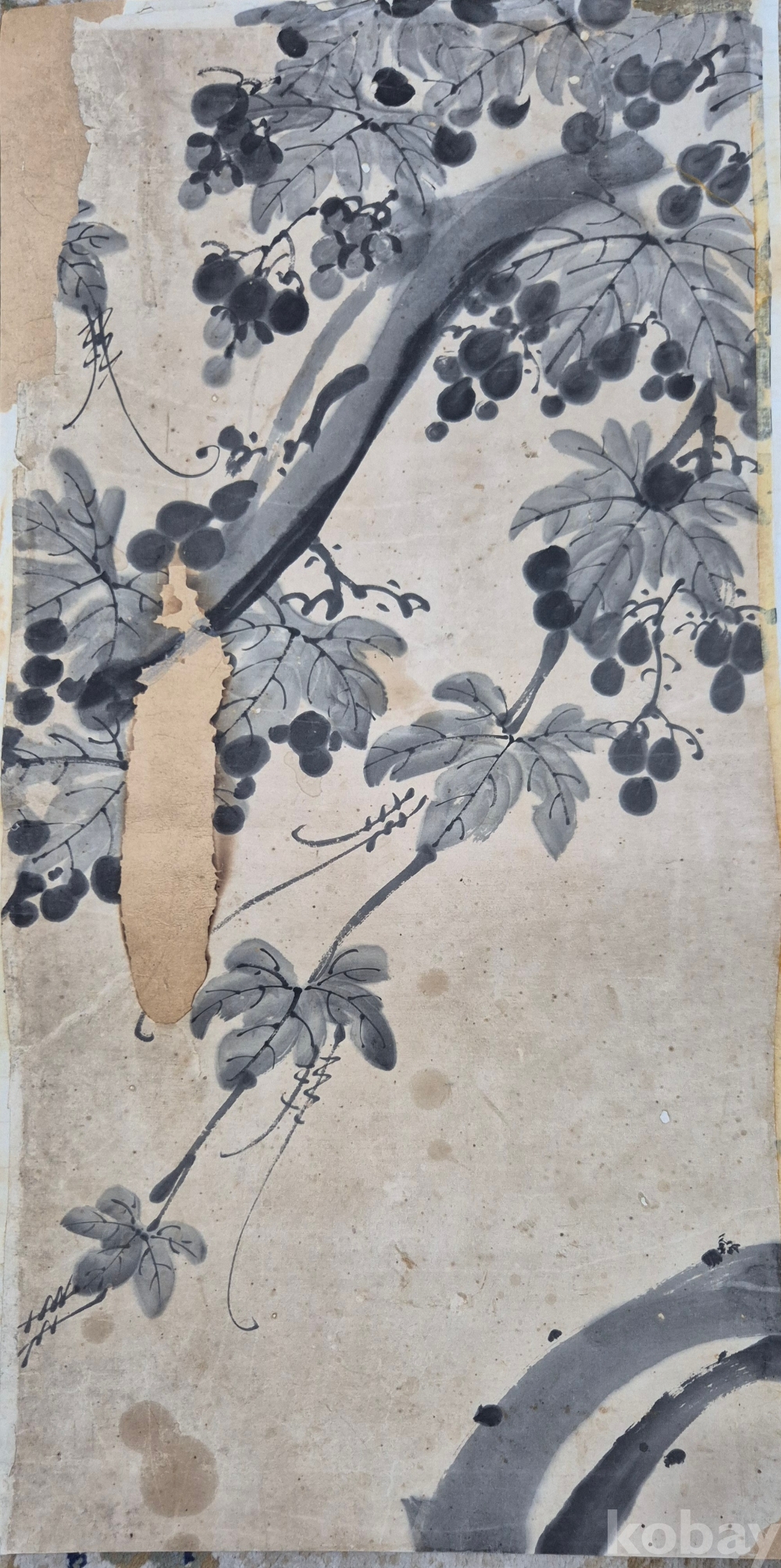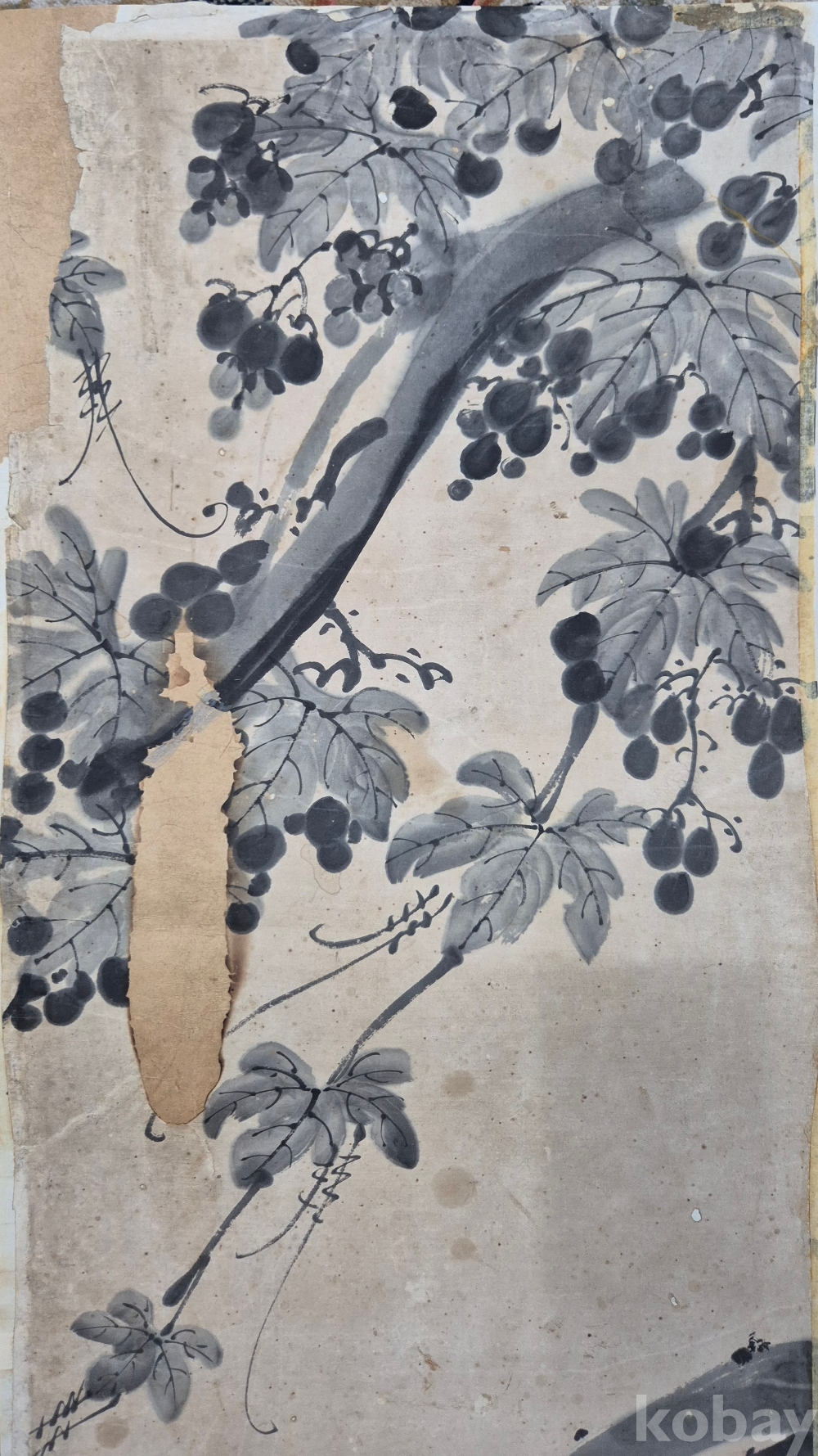 원래 10폭 병풍 작품 연결 포도 작품이나 오래되어 서너점 훼손되고 남은 작품이라 하셨으며