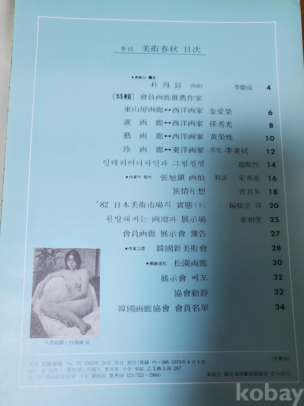 1. 미술춘추 12호(한국화랑협회, 1982년), 한국화랑협회, 1982년, 35쪽, 계간, 상태 상, 사진 참조
