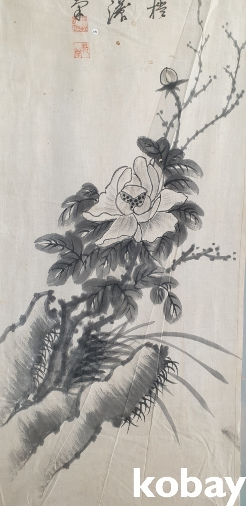 천바닥에 그려진 수묵화(水墨畵)입니다,